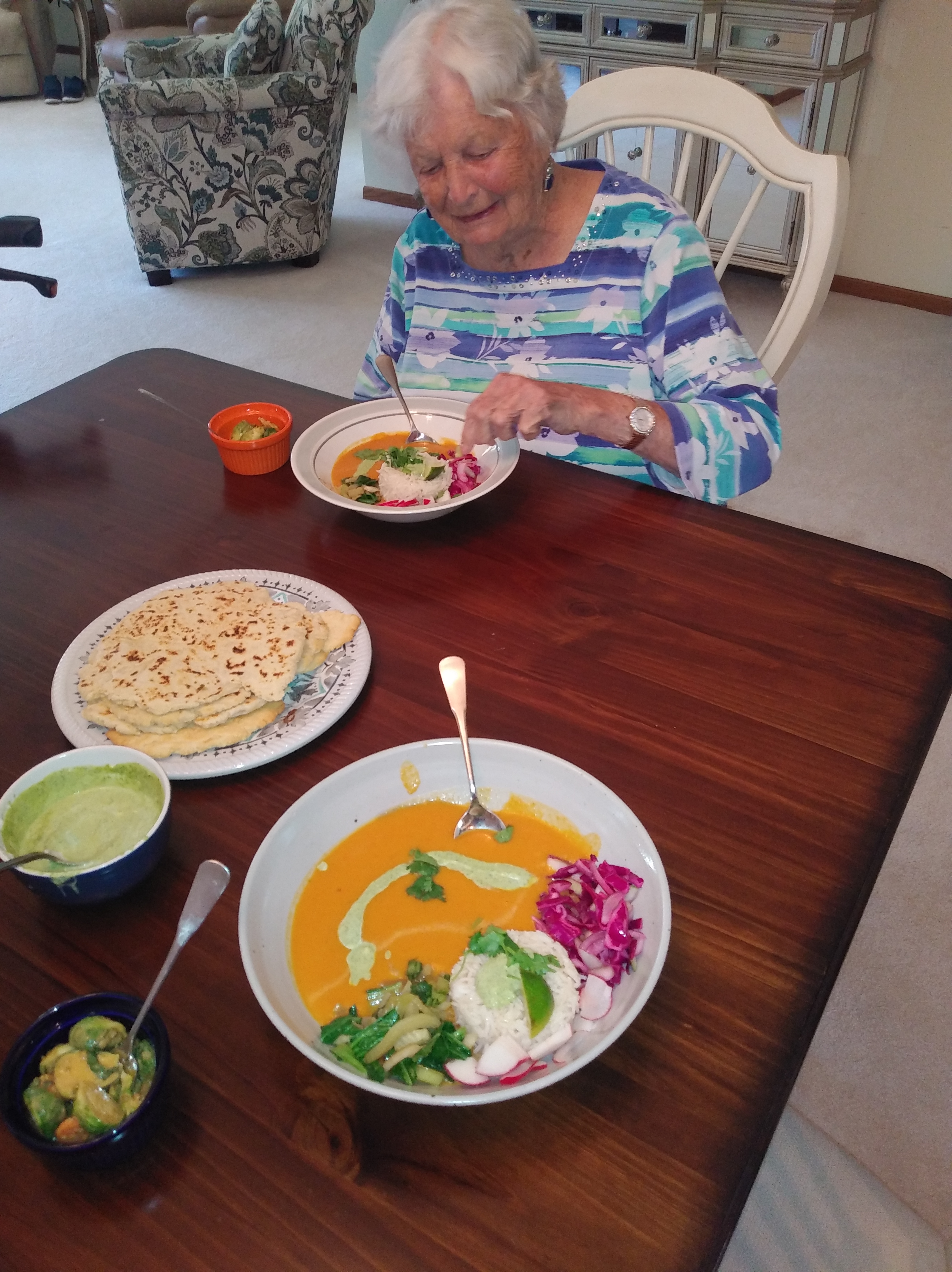 I love my Mom. She recently turned 100 and Shawn arranged a party for the ages (excuse the pun). Almost every living Dunbar was there. Besides being funny, kind, and caring, Betty is one tough cookie. For instance, she had her gallbladder removed two years ago. She had gallstones and was in immense pain before and after the stones were removed and the infection drained. The doctors were amazed she was not in the ICU fighting for her life. True to her colors, she flirted with the doctors, had her favorite nurses, shared a few jokes, and kept singing, “I wanna go home.” Her hip and back severely limit her mobility but, despite some short-term memory loss, she is quick to share her opinion about politics, religion, and people past and present. I just talked to her on the phone and knowing I was going to write about her, asked, “How would you describe yourself?” She quickly retorted, “I have no clue… Who cares?… What a terrible question.” Along with her quick wit, she has a patient and giving nature.