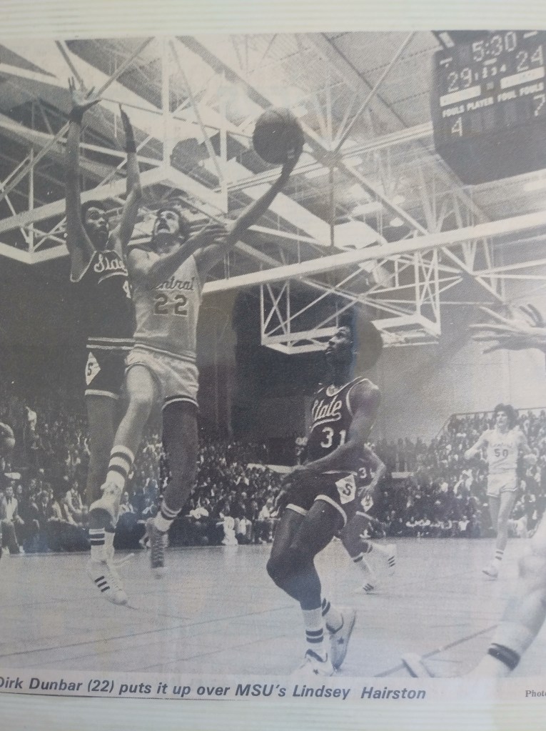 I am not the only one who believes that I would have starred in the NBA if not for a series of knee operations. I know how that sounds. But hear me out. I have played with and against many NBA players who agree. Gus Ganakas, the head coach at Michigan State, said after my freshman year, “In Dirk Dunbar, we feel they have one of the best guards in the nation.” I outscored, out-rebounded, and out-assisted Illinois State senior Doug Collins in a game my freshman year, and hit four free throws in the last two minutes to win it. Reporters compared me to Dave Bing (who I played against and befriended at St. Cecelia’s the week of the high-school Roundball Classic) and to Nate “Tiny” Archibald after he led the NBA in scoring and assists two years in a row. A former Central Michigan teammate, George Kubiak, recently stated that whenever he was asked he said I played a lot like Steve Nash, “only better.” More than anyone else, however, I’ve been compared to Pete Maravich–that includes James McElroy, one of Pistol’s ex-teammates with the Jazz. I could go on but you get the point and this all sounds pretentious enough.