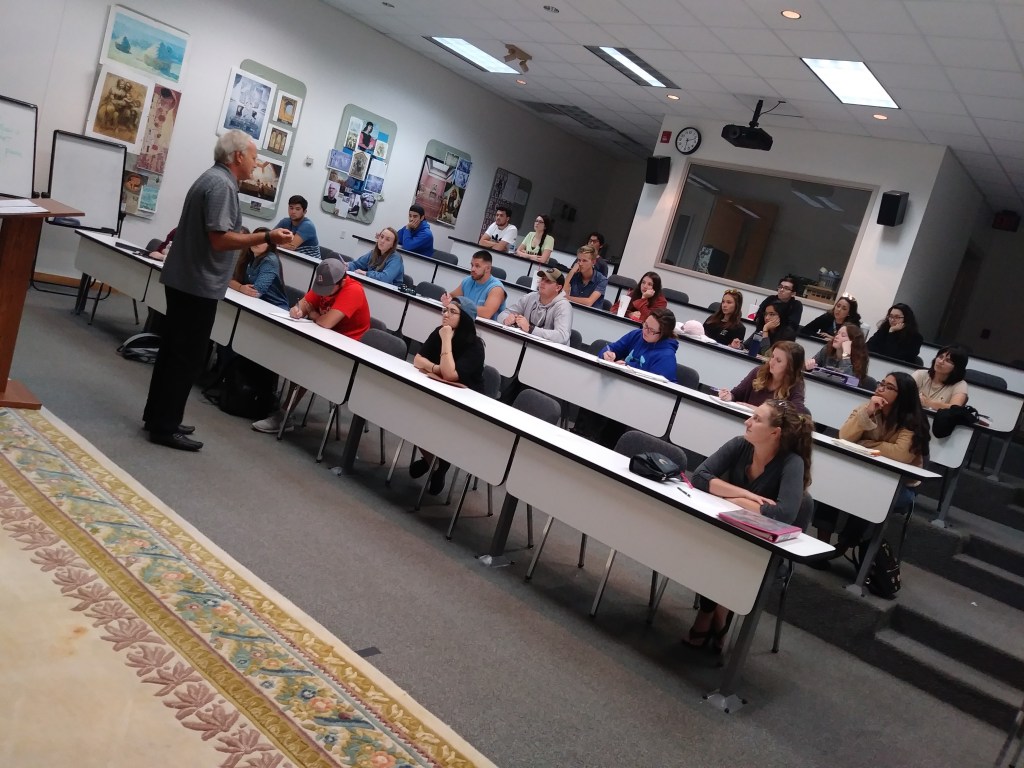 I taught over 30 different courses, over 340 sections, and well over 6,000 students in my 33 years as a professor and my aim has always been to get students to discuss passionately and tolerantly issues that concern what it means to be humane, how values develop relative to social and environmental conditions, and how cross-cultural exchange could help heal dysfunctional relationships between sexes, races, nations, and humans and nature. For nearly every one of those years, I had to create portfolios (which served as the sources for most of the content of this whole page) and submit a “goals statement” or philosophy-of-teaching statement. My last one went something like this: “My goals as a teacher are to challenge and inspire students to engage their skills, find their interests and write intelligently about them, participate in class discussions, assist them in understanding course materials, and, most importantly, help them cultivate a passion for learning.” I consider teaching a privilege and an immense responsibility. A teacher can have a lifelong impact on students, which is why I always attempt to create an environment that promotes tolerance, open-mindedness, comradery, and reciprocal communication and understanding.