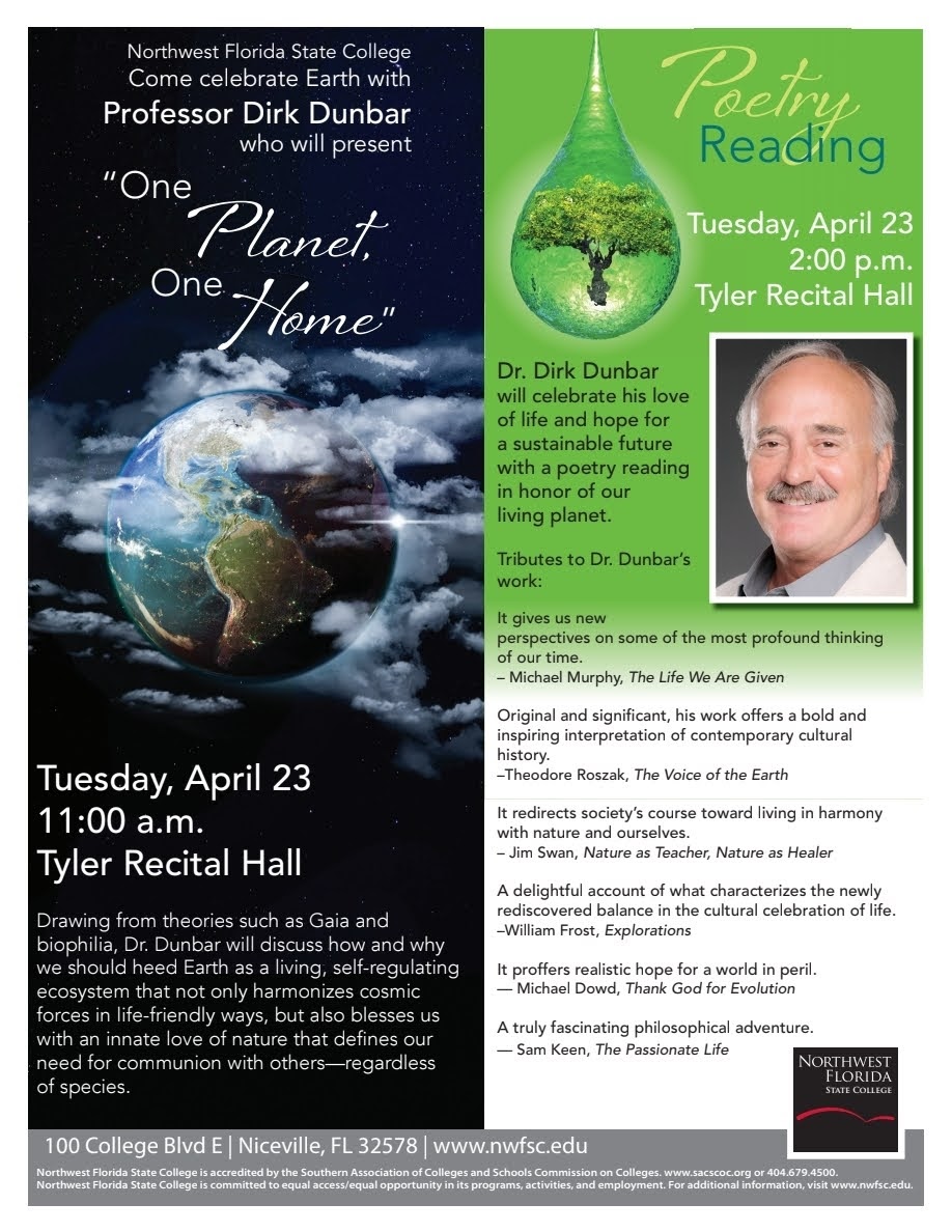 I was very active with student life outside of the classroom. For instance, I revitalized the Environmental Club, served as an advisor for many years, and initiated the college’s recycling program. I gave dozens of environmental talks at the college, hosted panel discussions, and brought in speakers (including ecofeminists, deep ecologists, and environmental scientists). I instigated twenty straight Earth Day celebrations that included planting trees and shrubbery, talks and panel discussions, and/or live music and food and drink. Besides the college, I have given multiple presentations Unitarian Universalist Church, the Niceville Library, and many other venues. I was involved with college athletics, spoke to basketball teams, and volunteered as a tutor. I attended most of the student plays, dance facets, art exhibits, and other productions; went to hundreds of home sporting events; and shared my work with faculty art exhibits. Other co-curricular endeavors included hosting Tibetan Buddhist monks on two occasions, bringing them to classes and the beach, and sharing various daily activities. It was a wonderful experience to befriend such enlightened people–first Sonam and Thupten then Jamba and Yeshi.