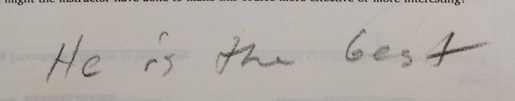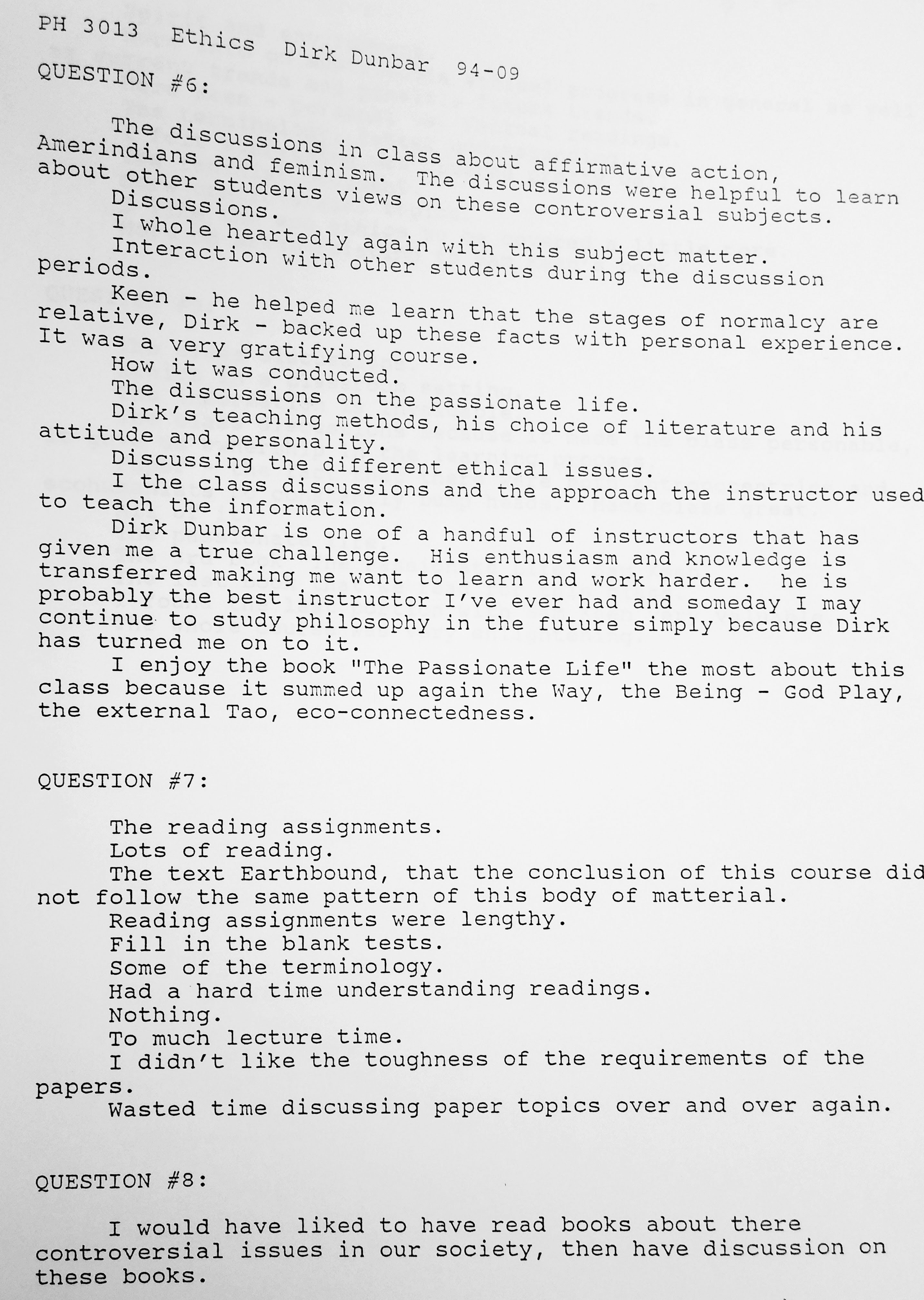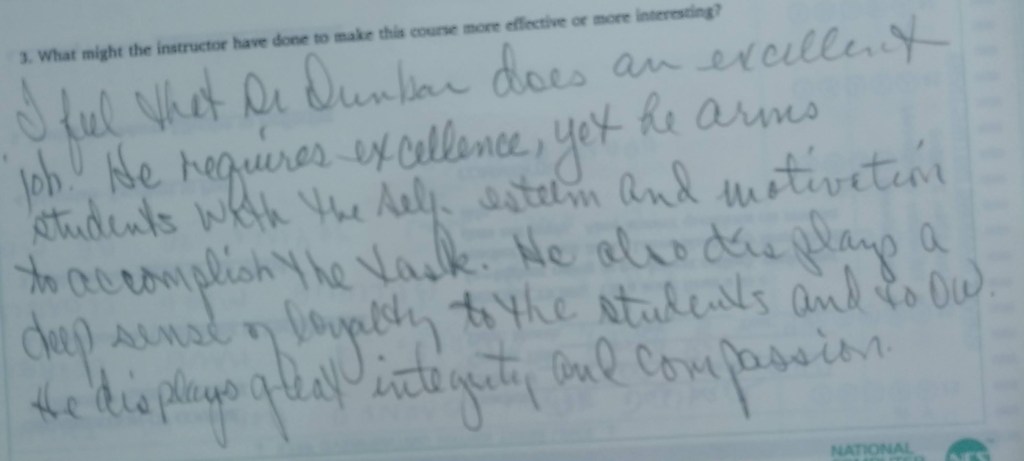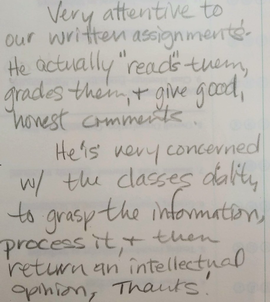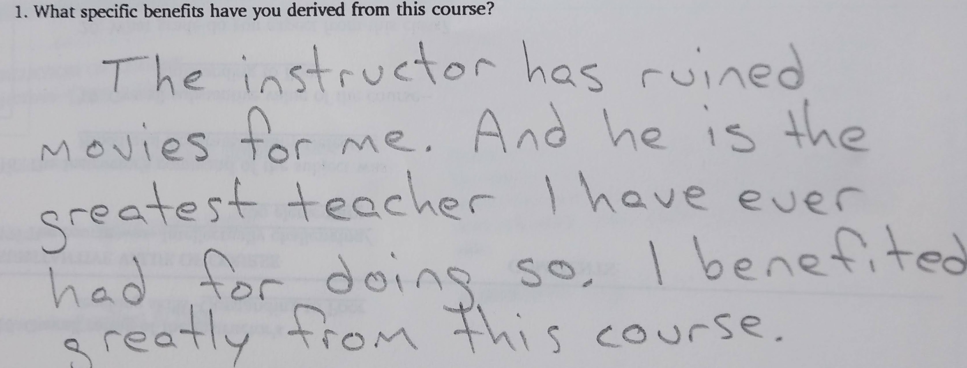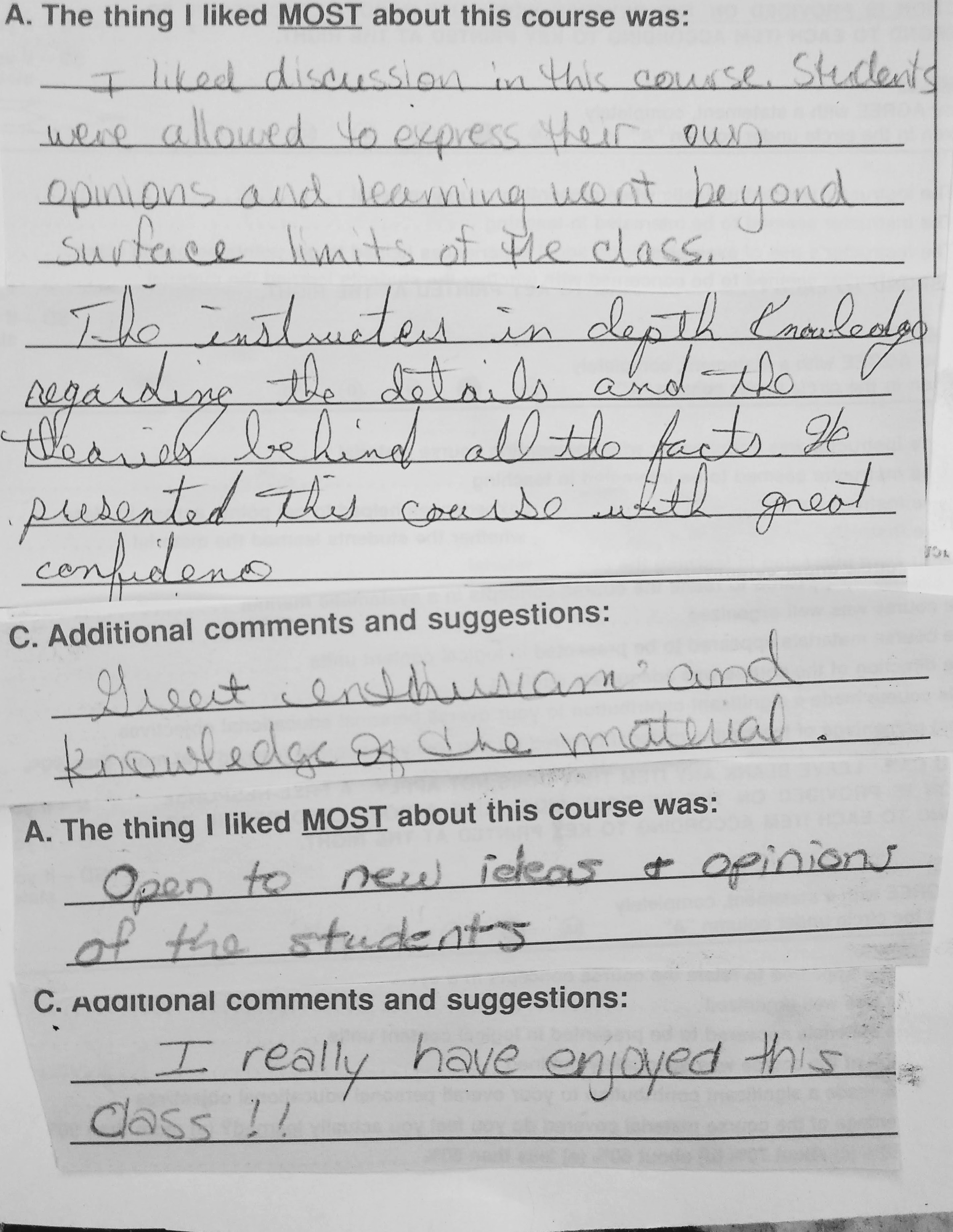 The following comments are from a film class during my last semester at FSU when the department started typing the evaluations: