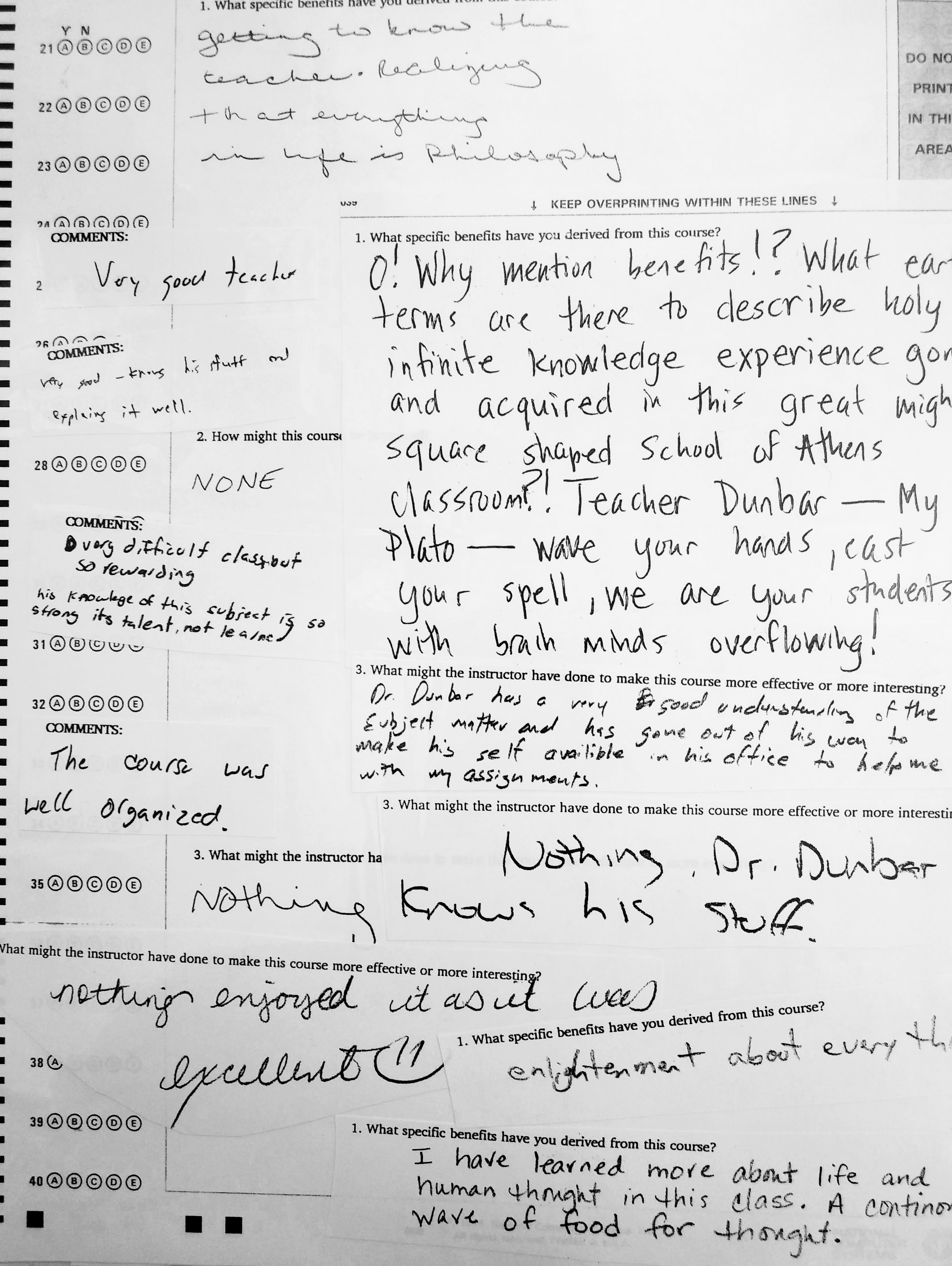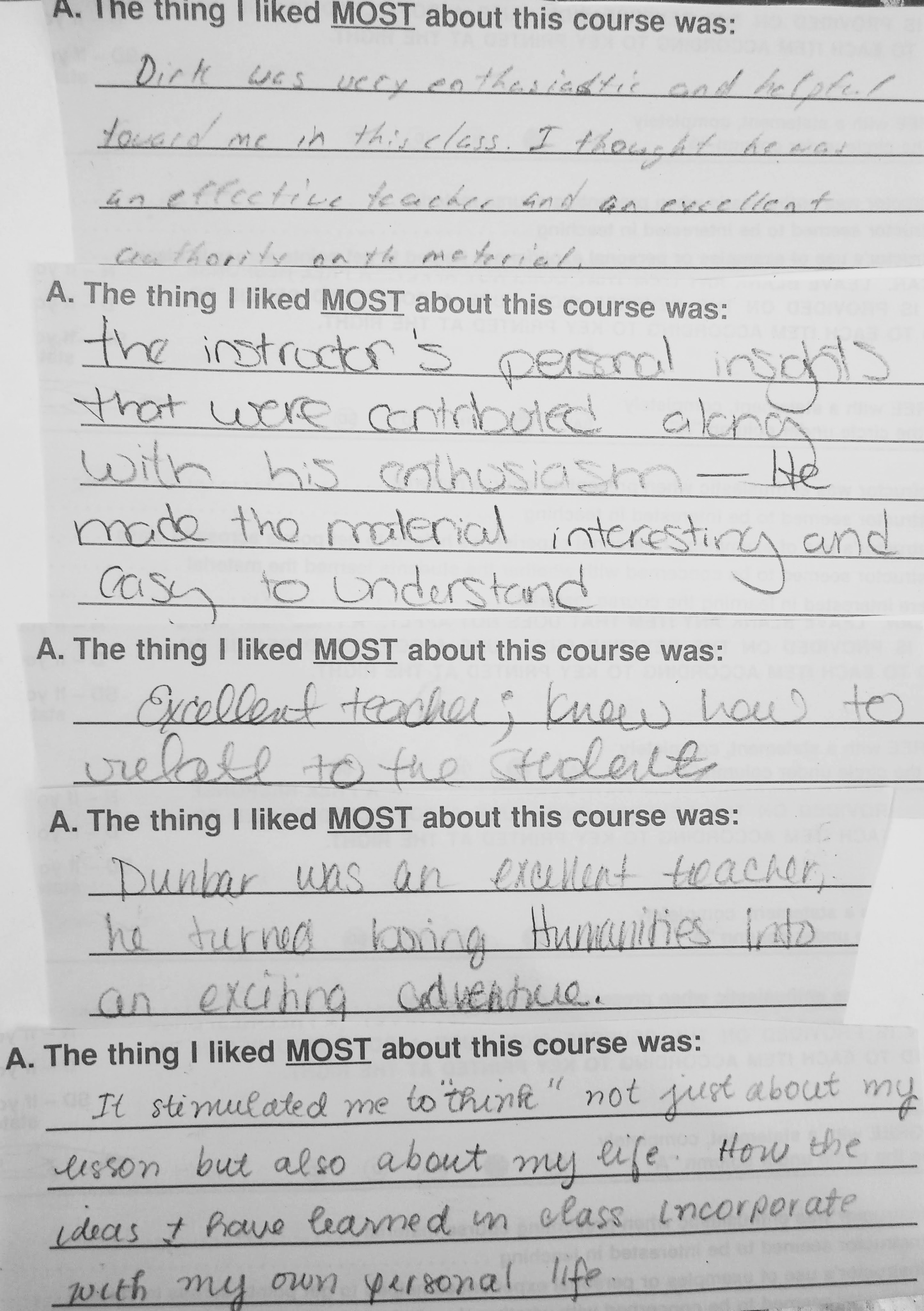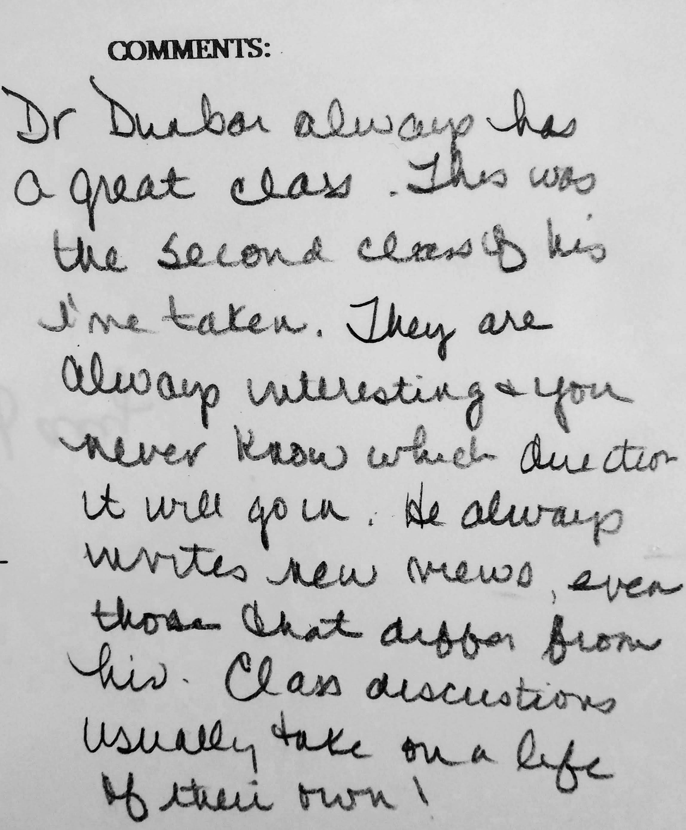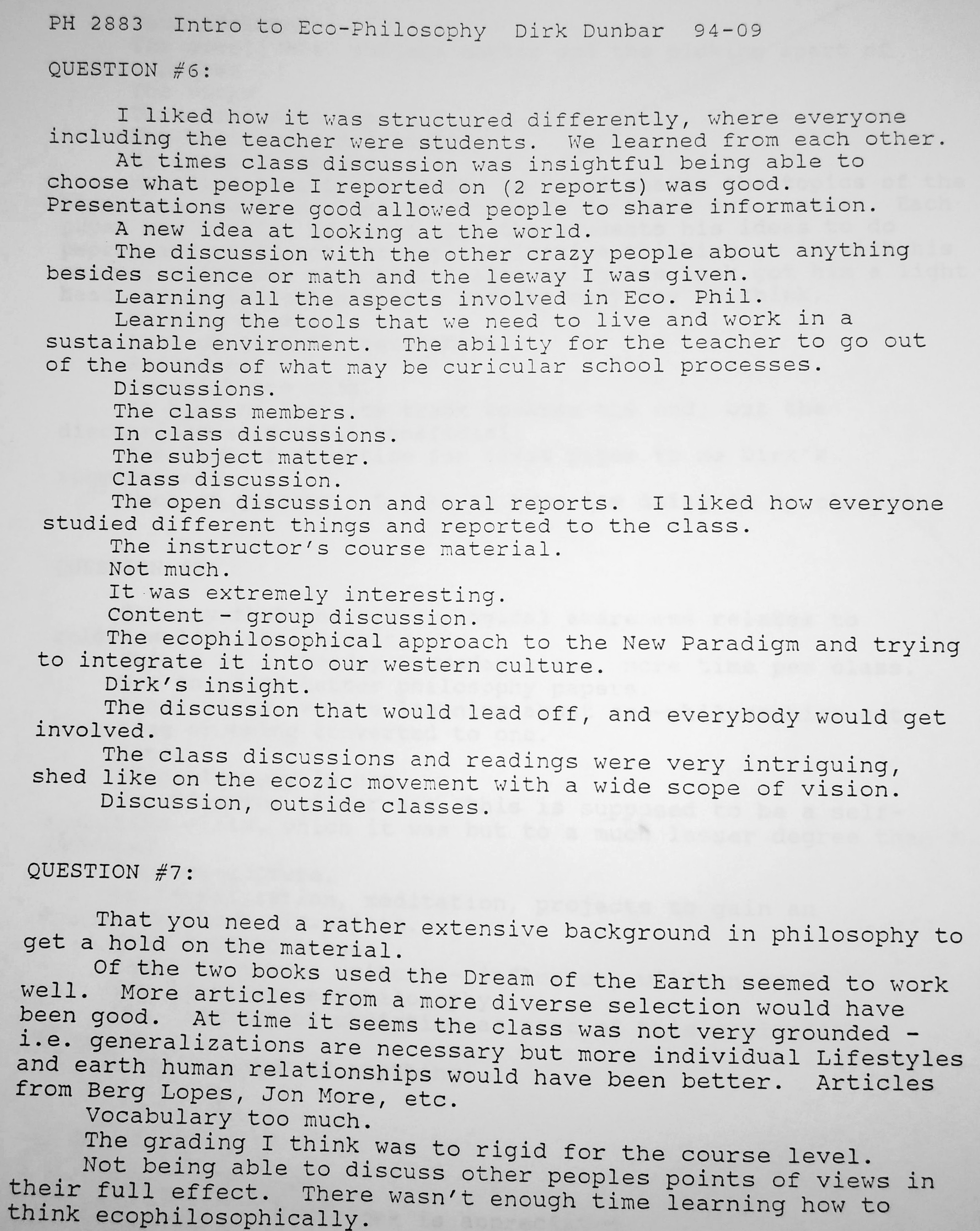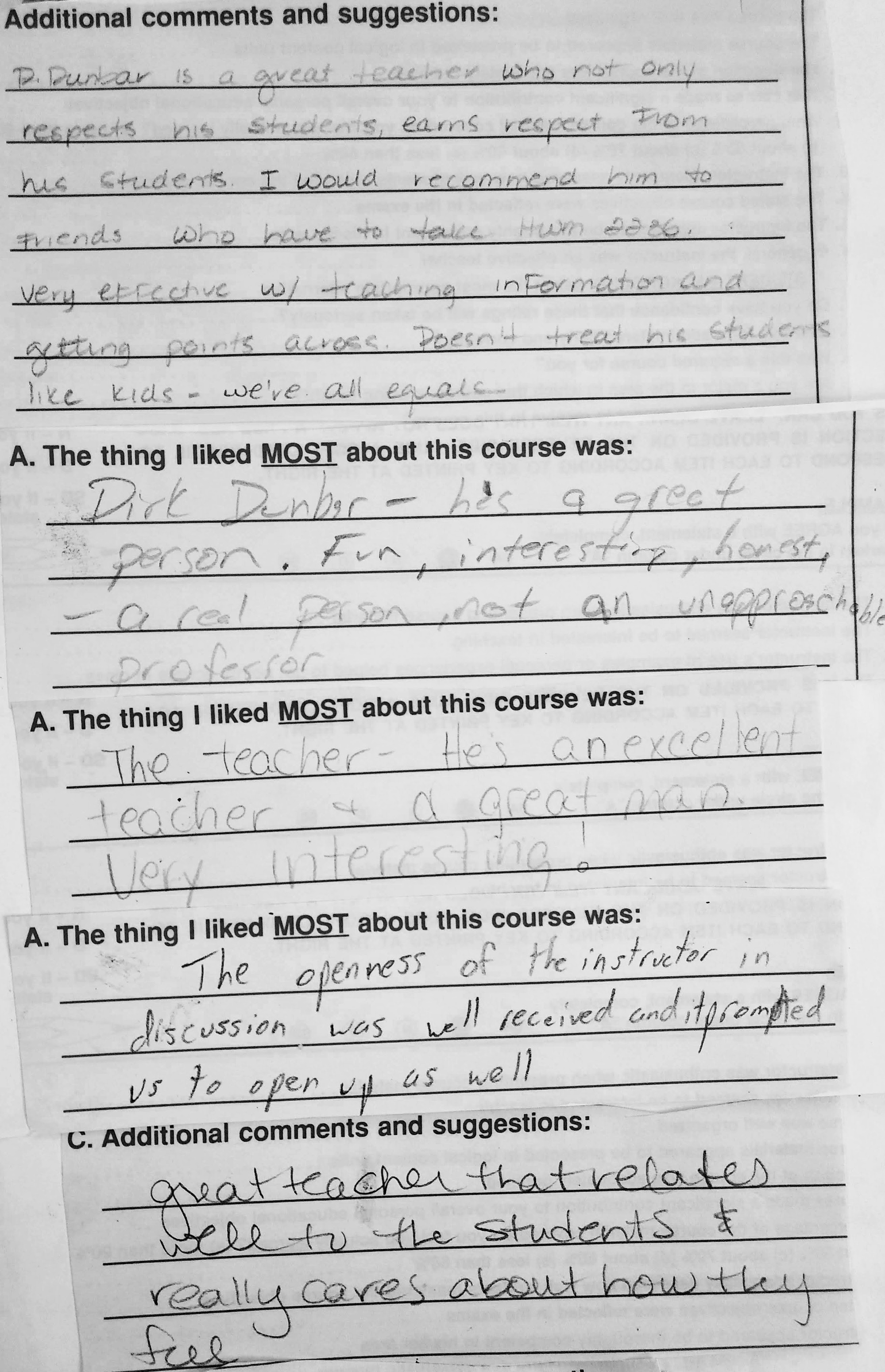 The following comments are from a film class during my last semester at FSU when the department started typing the evaluations: