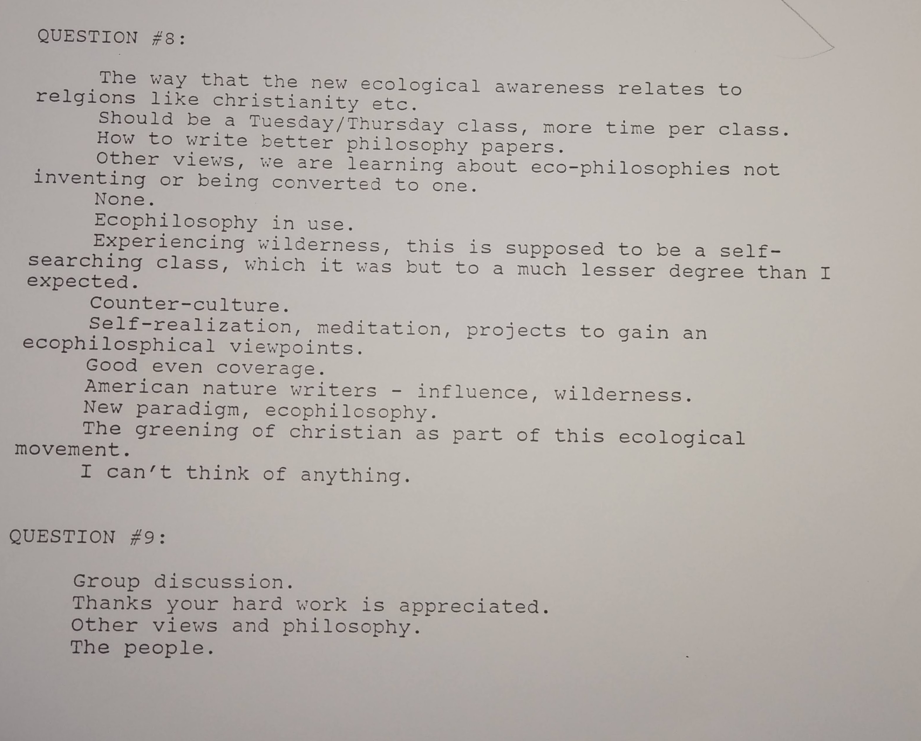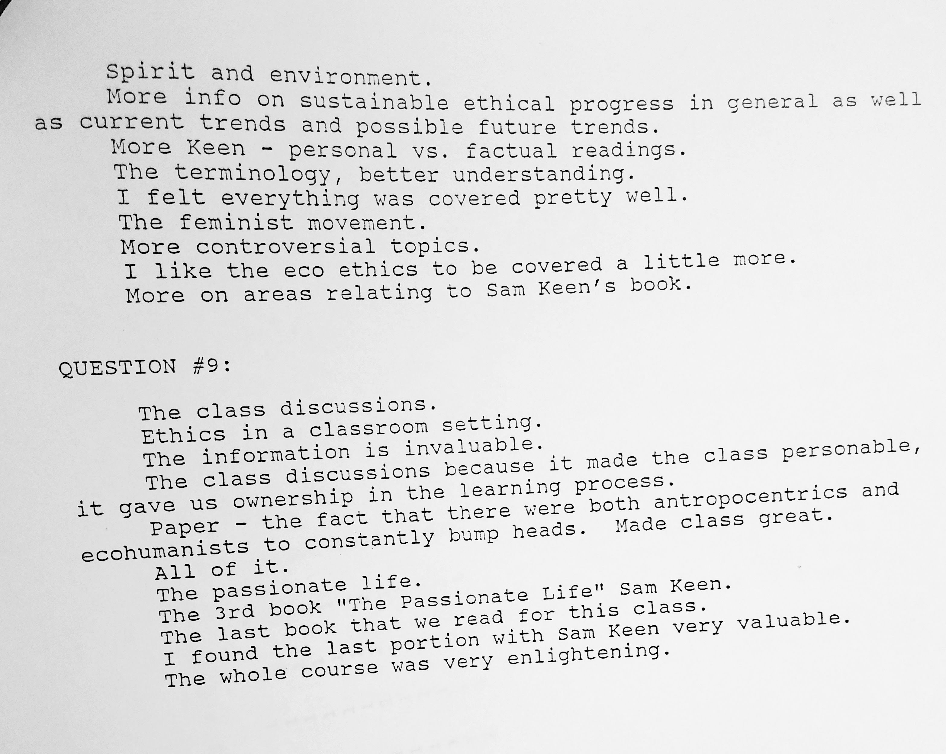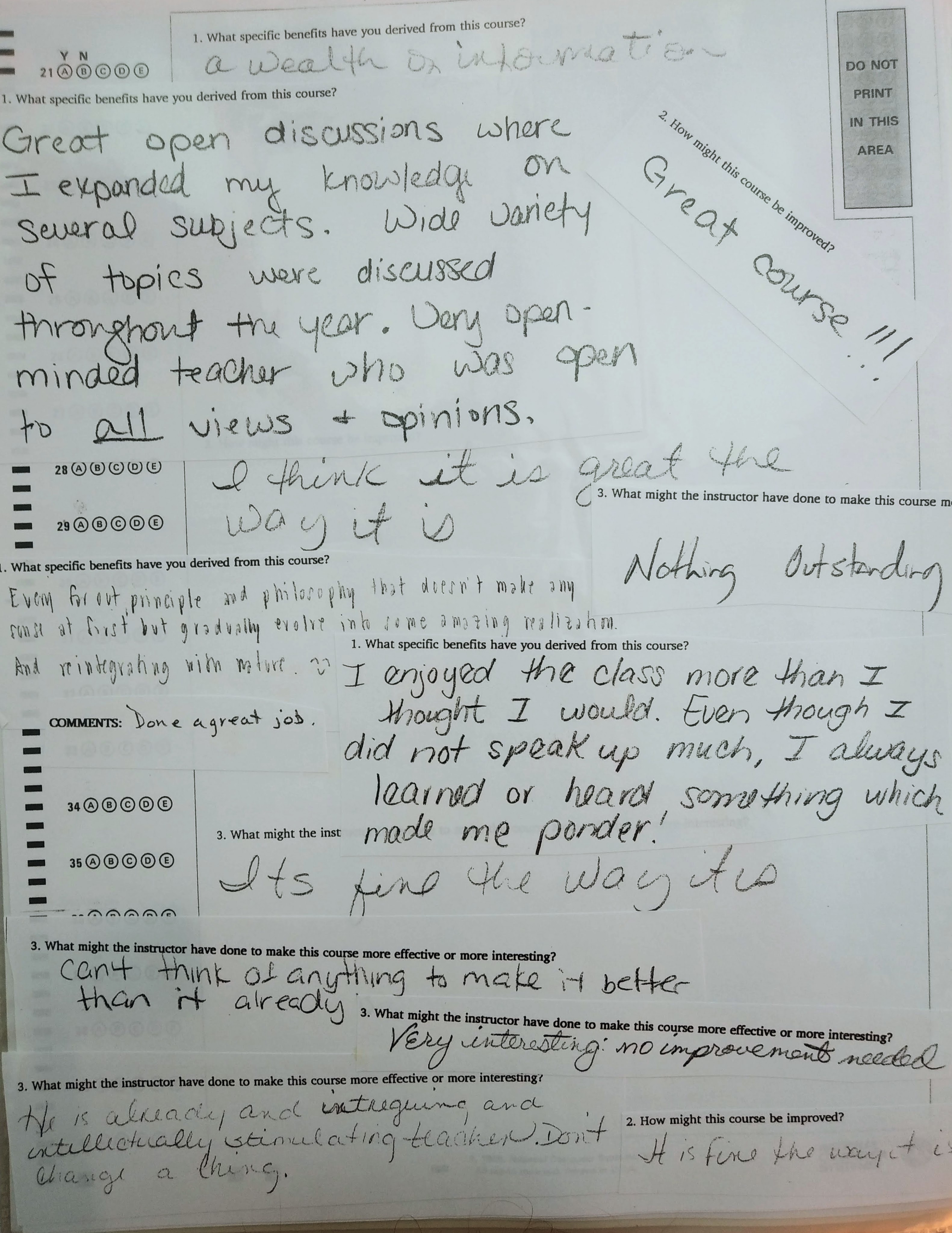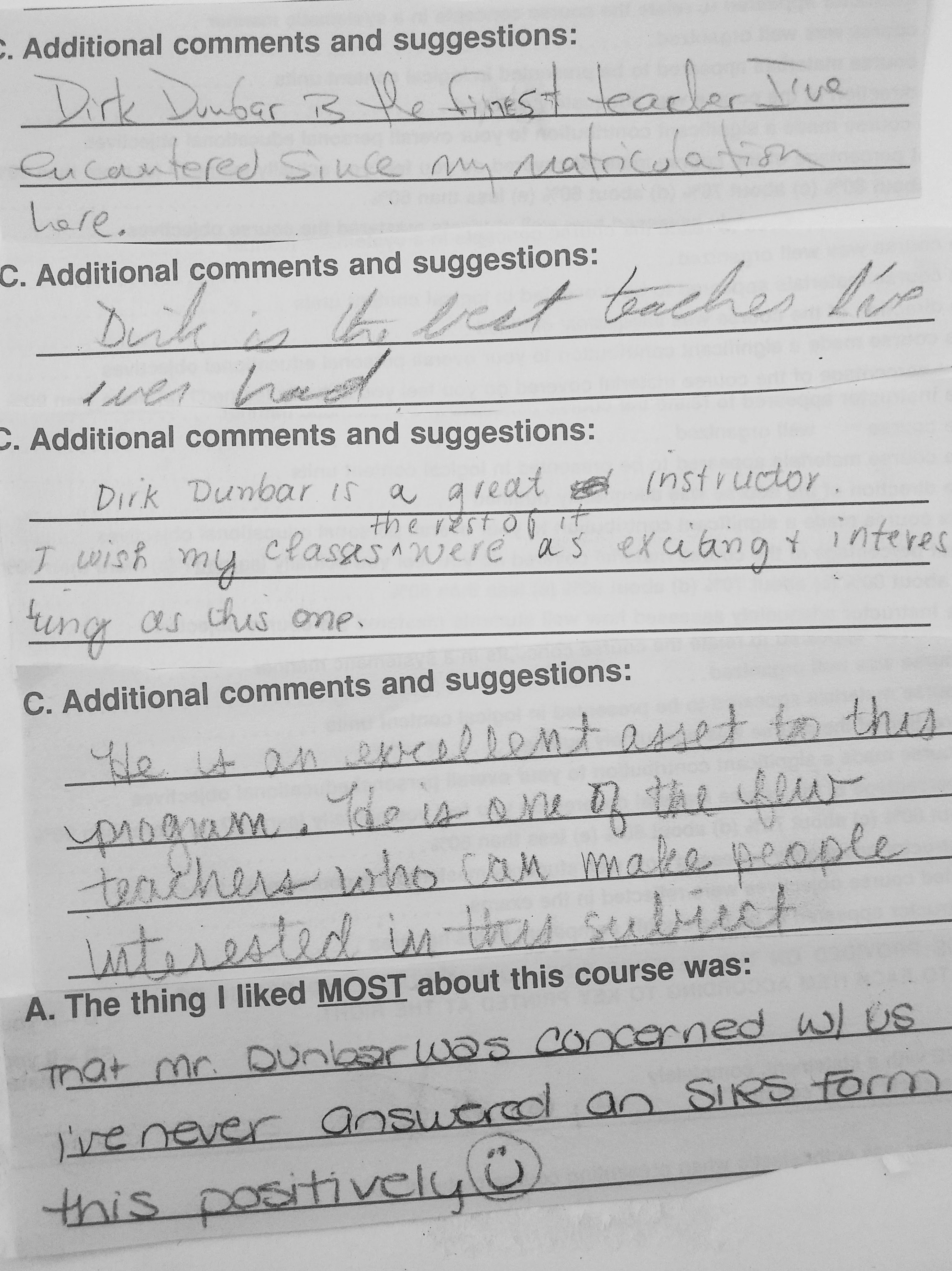 The following comments are from a film class during my last semester at FSU when the department started typing the evaluations: