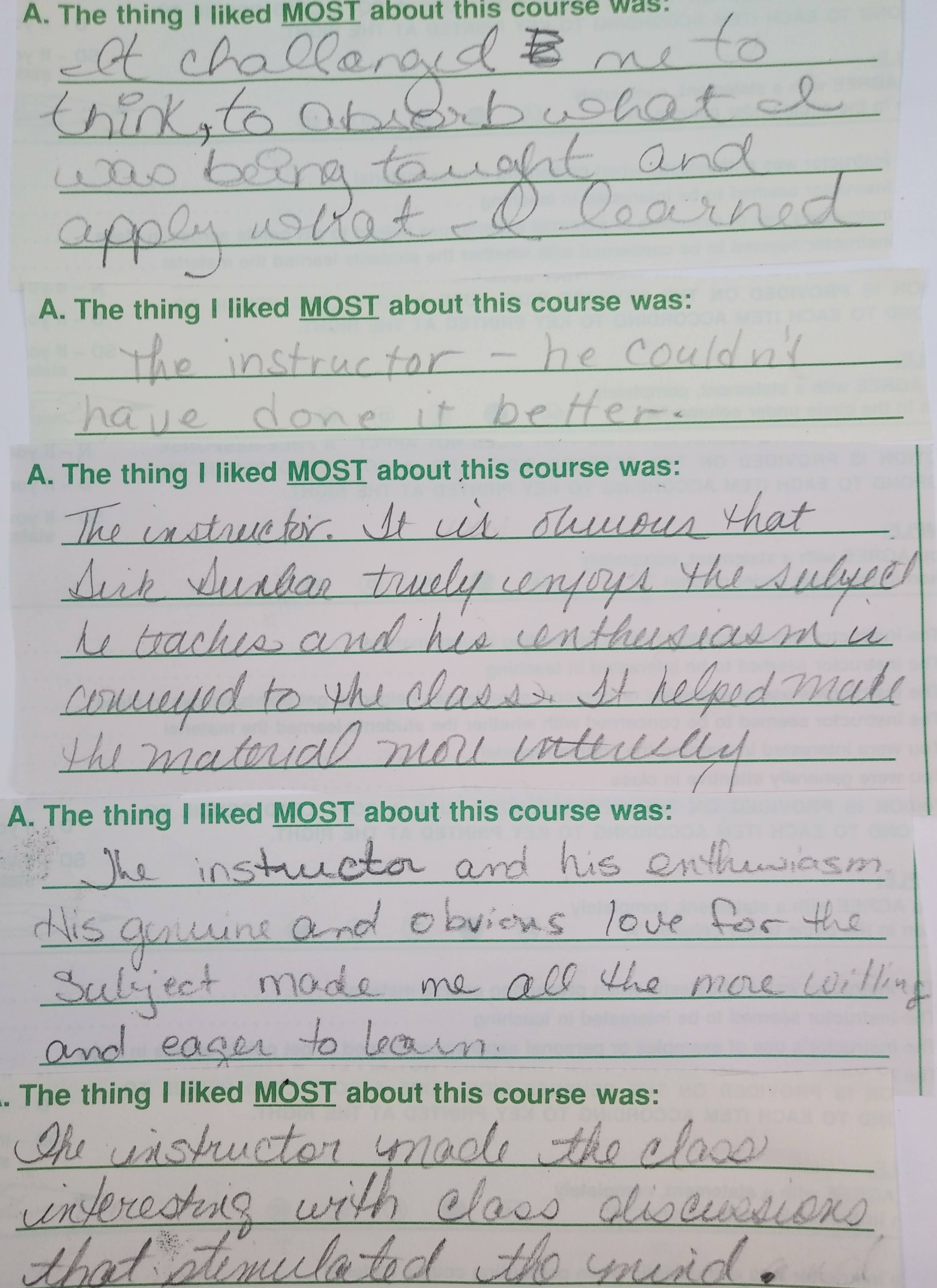 Here are further FSU student comments from my first years as an instructor: