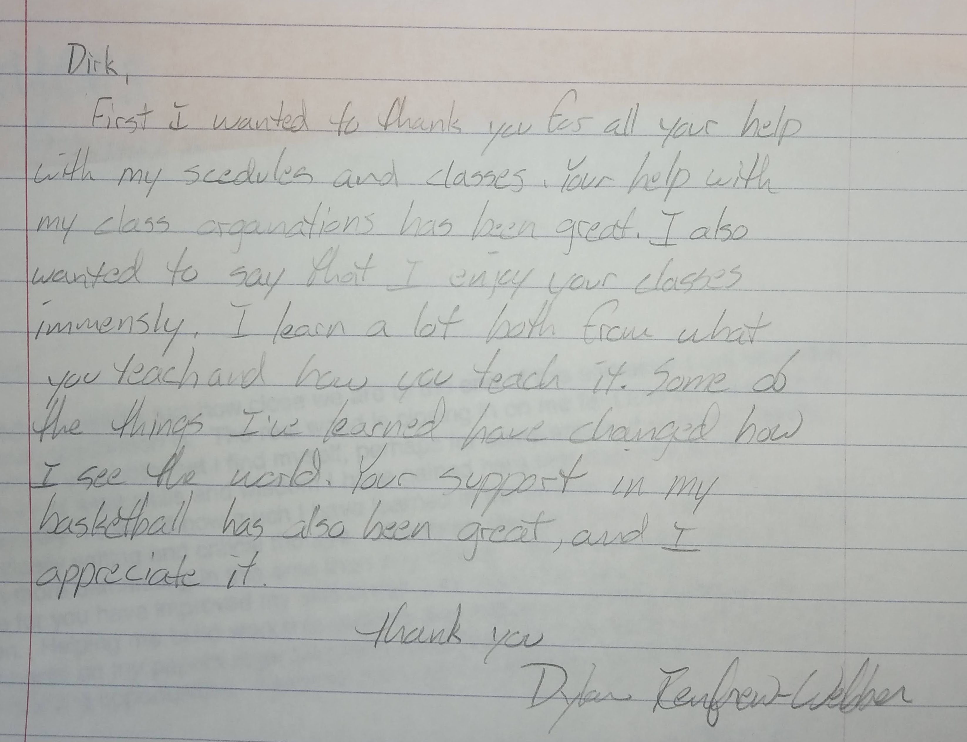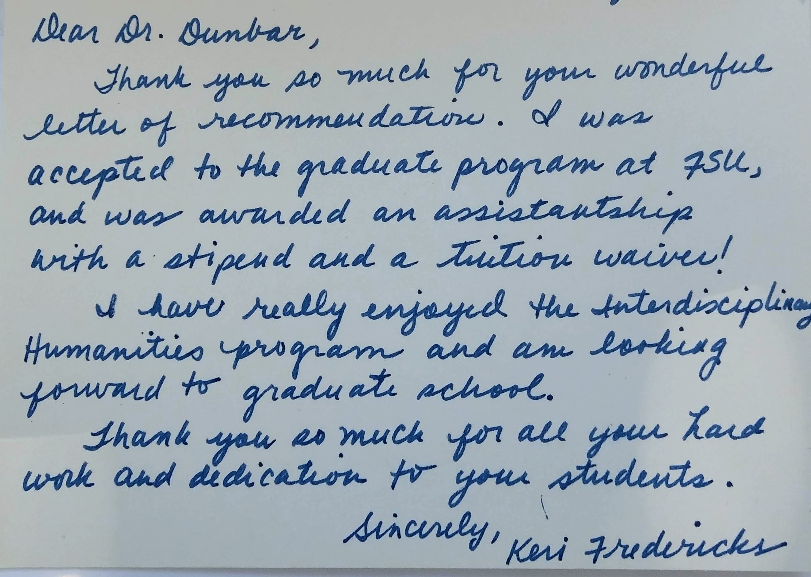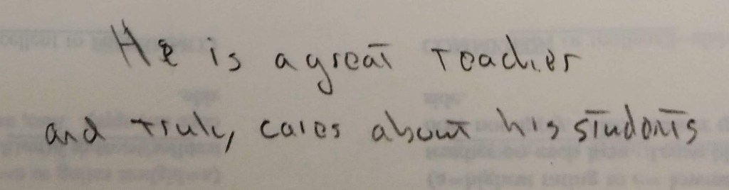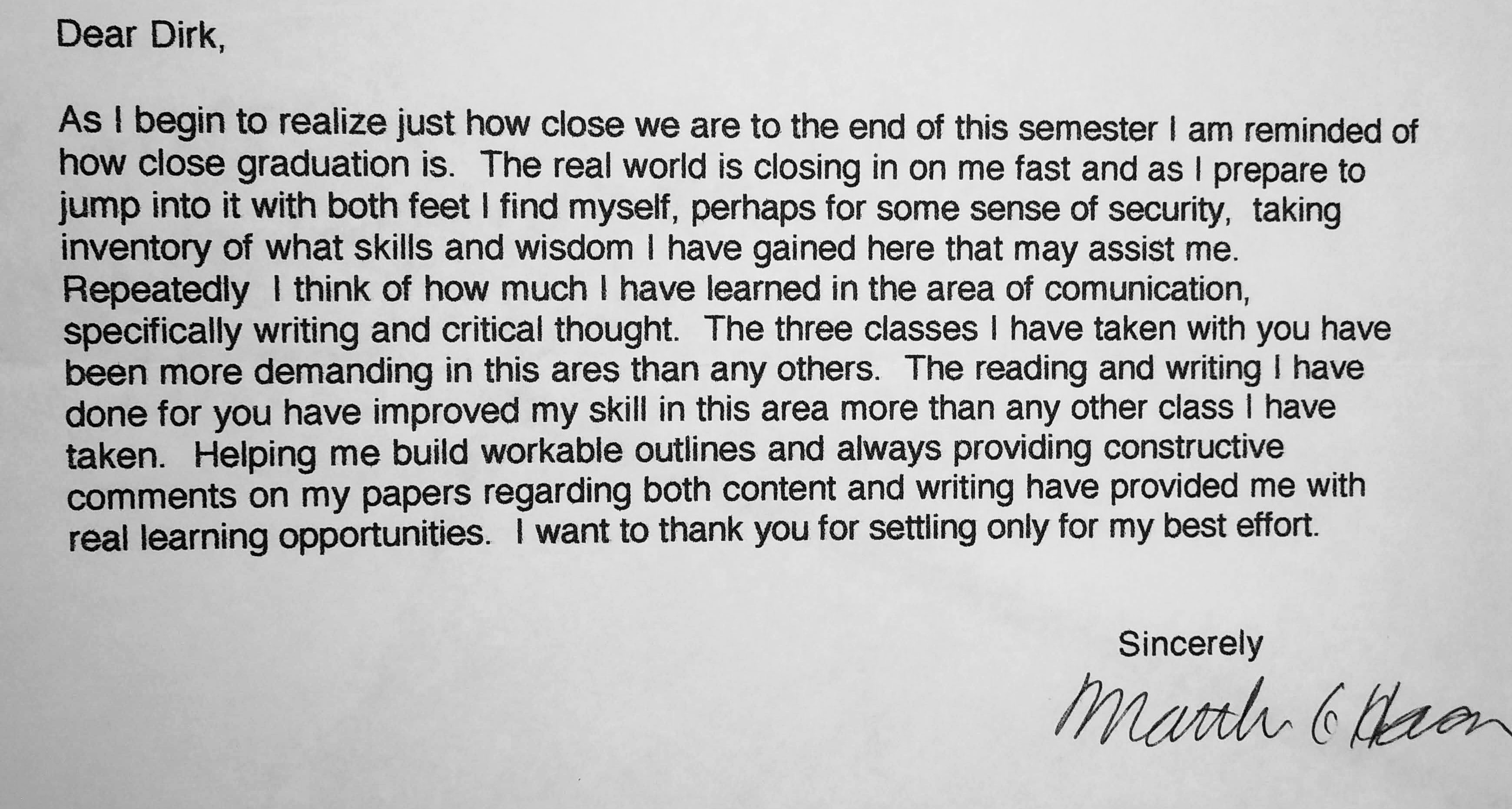 Here is a letter a student wrote to my evaluation committee: