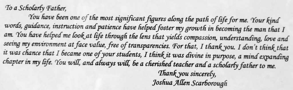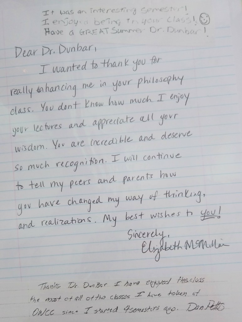 Here’s an anonymous FSU student letter I received at the end of my last semester there: