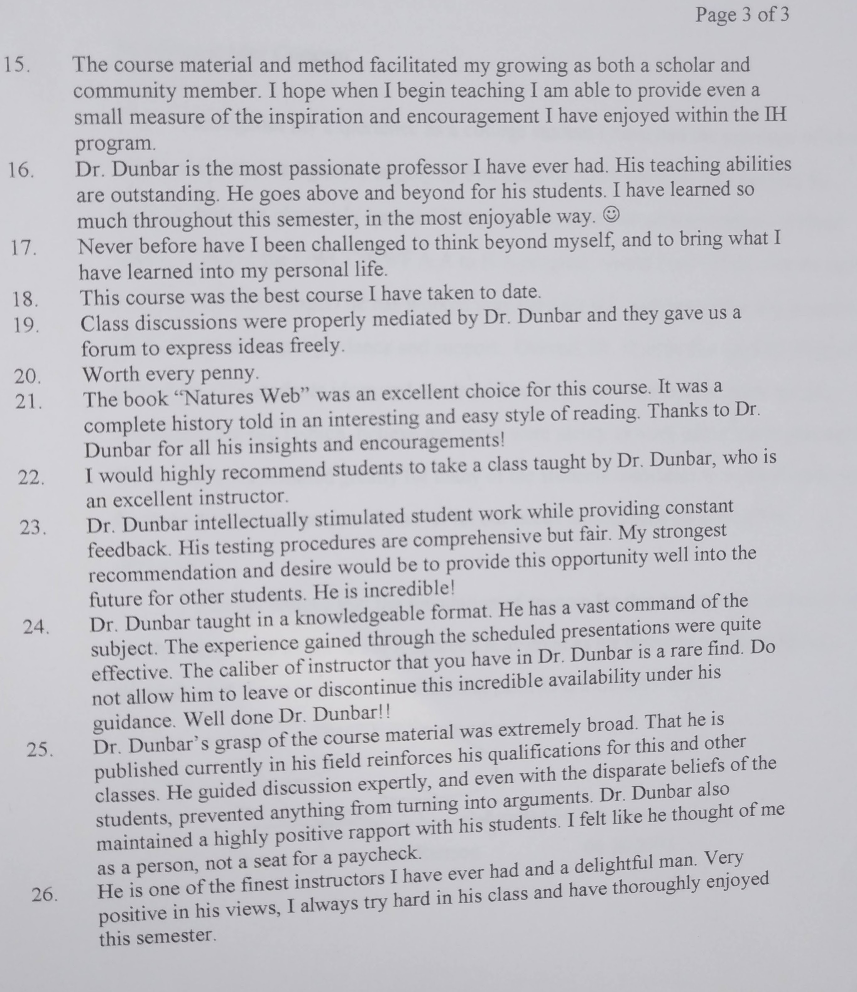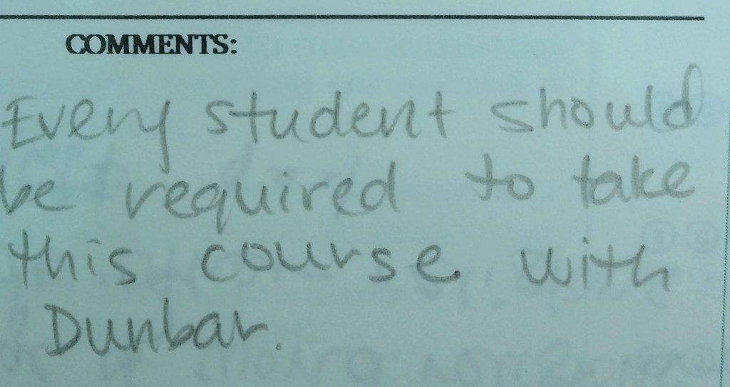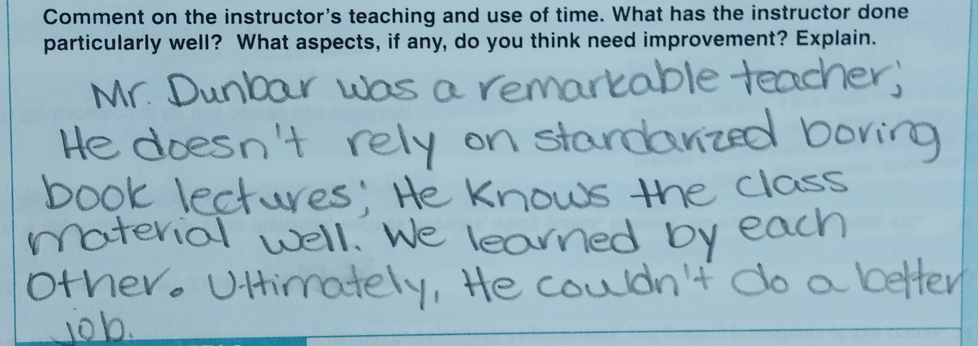 - Dr. Dunbar is now one of my favorite teachers and I will certainly recommend him to anyone who asks for a good class or teacher to take.