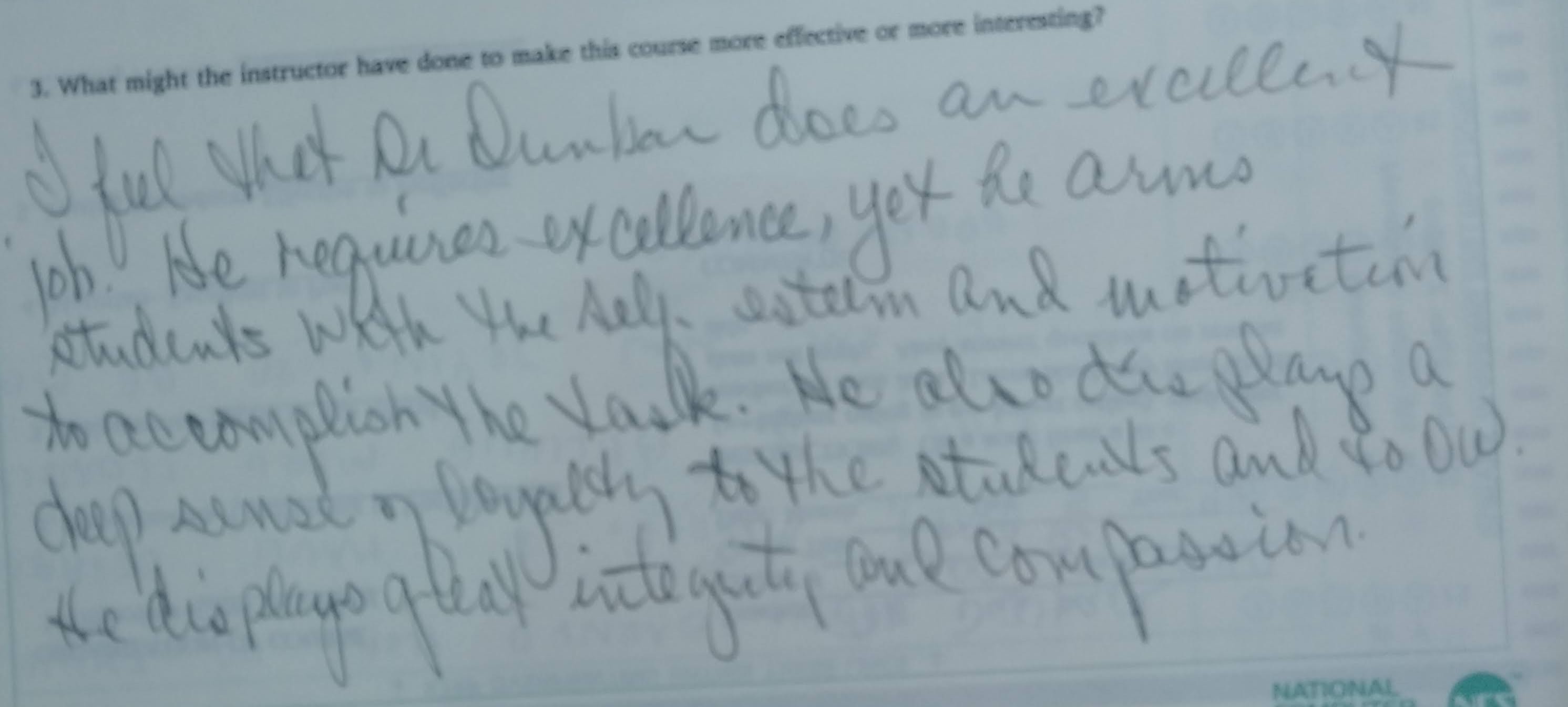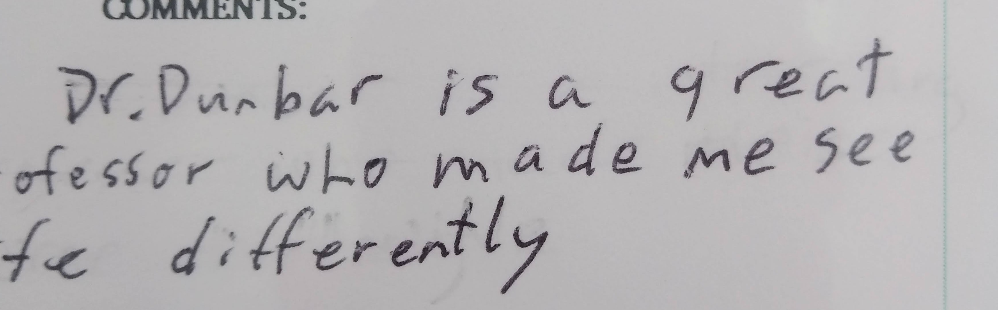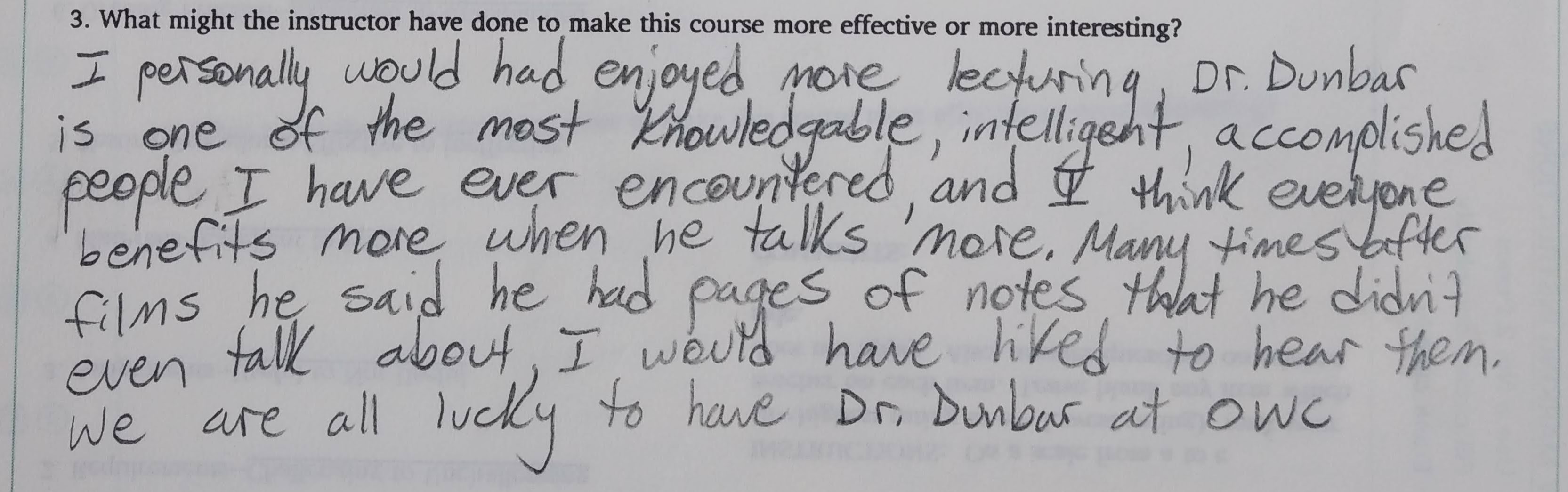 - Dr. Dunbar is now one of my favorite teachers and I will certainly recommend him to anyone who asks for a good class or teacher to take.