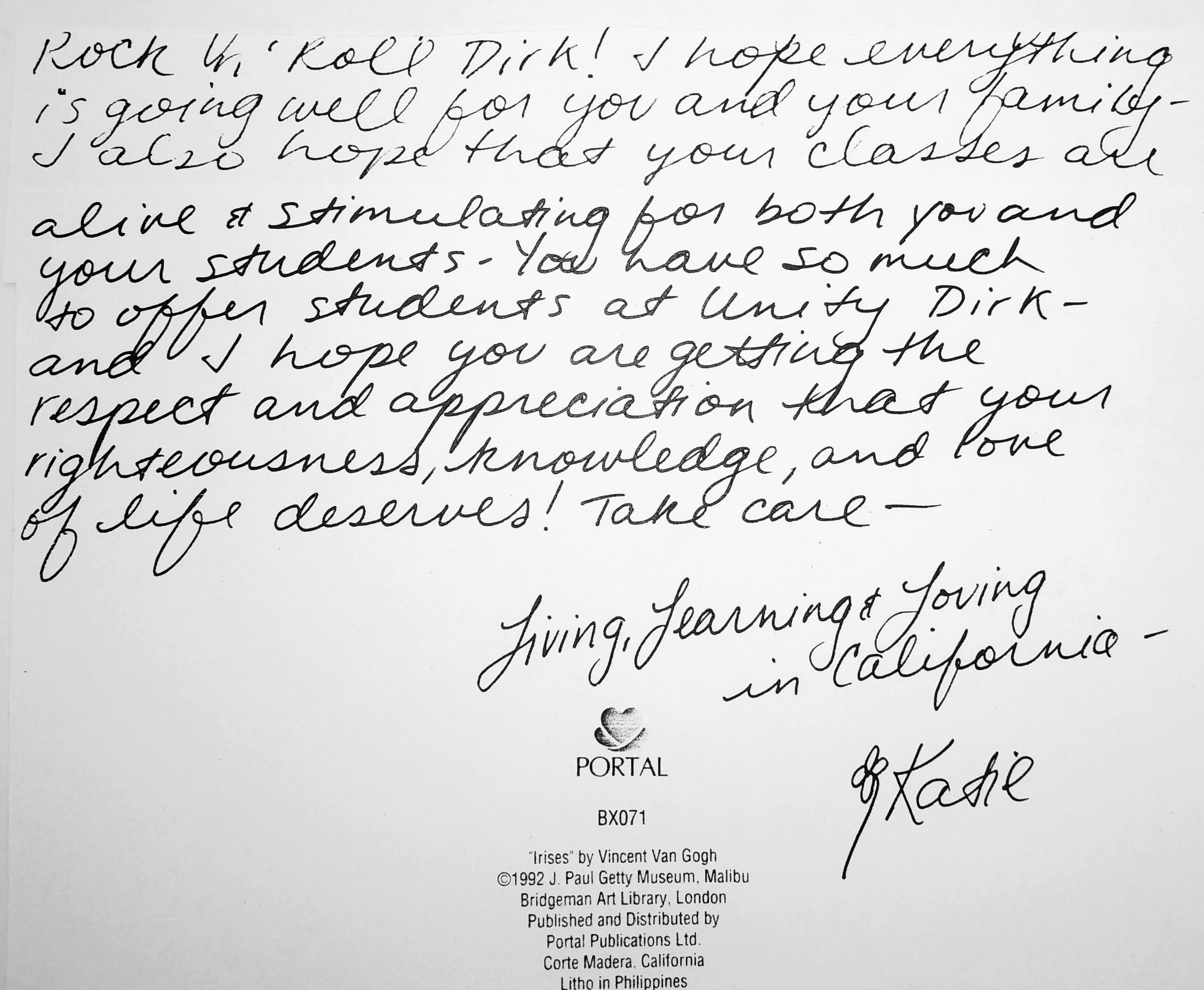 My administrative duties were extensive. Besides serving on faculty search and library and department review committees, the General Education Committee, as a consultant for the Council of Independent Colleges on Environmental Studies, I chaired the Vision 2001 committee, initiated and co-authored a highly successful B.A. program in Environmental Humanities, was the humanities department director. As Jim Horan, my friend and department chair stated in my evaluation: “I find DIrk’s contribution to Unity’s student life, cultural activities, and governance to be outstanding, one that could well serve as a model for other faculty.”